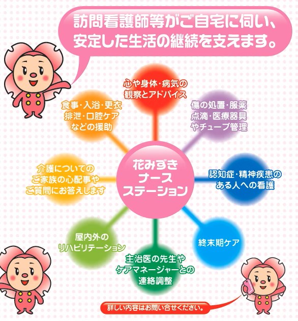 松江市全域をカバーする花みずきナースステーションは、24時間連絡可能な体制で、