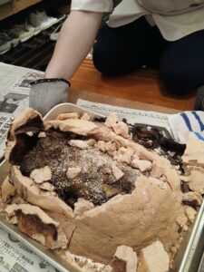 目玉料理は、「牛タンの塩釜焼き」でした!!食べる前には、子供と大人で塩釜を金づちで叩き、開封の儀式?を皆で楽しく行いました。子供達も初めて見る料理に、興奮気味でした!!