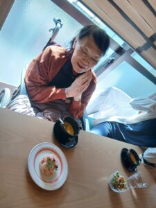 そんなある日、O様は、自分では無理だと思っていても、しっかりと花みずきを頼ってくださり、「外に出たい」、「エビとカニを生まれて初めて食べてみたい」と看護師に伝えてくれました。